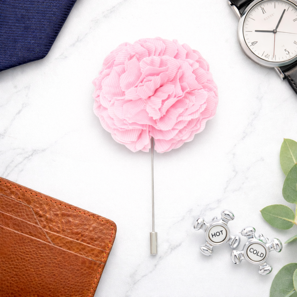 Make a statement without saying a word. This Light Pink cotton flower lapel pin adds a refined pop of colour to any suit—perfect for weddings, formal events, or elevating everyday style.